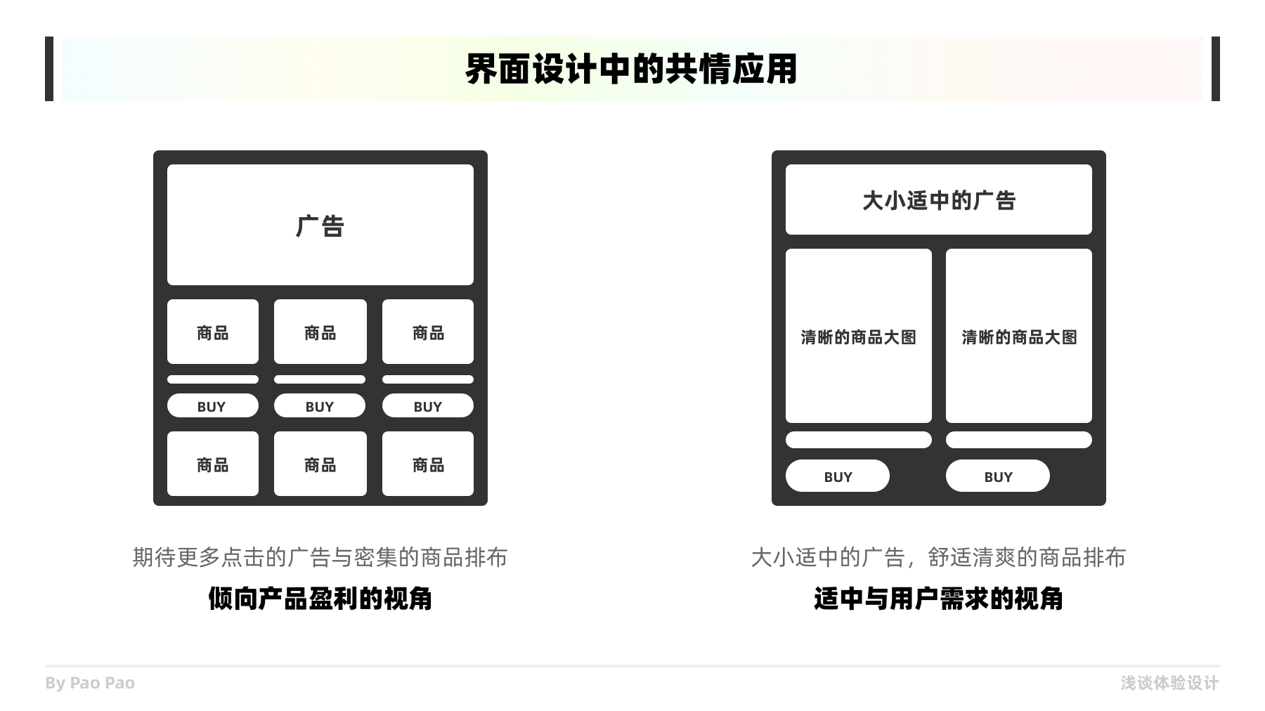 對(duì)于“共情”我更多的理解成是兩個(gè)或多個(gè)載體之間的一種共識(shí)一種情緒共鳴,然后再到行為跟思維上的影響。但實(shí)際上發(fā)生完全的共情是不可能的,有時(shí)連我們自己也會(huì)做一些無(wú)法理解的迷惑行為,并且客體是多樣化的,可以是跨物種的,跨維度的。而我們要做的就是在工作中定義共情的有效范圍,盡可能的與目標(biāo)用戶產(chǎn)生共情以了解更多信息或需求,然后去定義和構(gòu)思新的需求與設(shè)計(jì)。共情很重要,但它不是設(shè)計(jì)工作中的全部,有效而不要過(guò)度的使用也很重要。