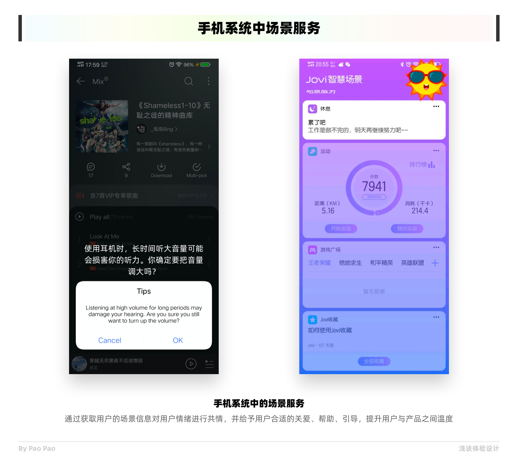 三、情感關(guān)注型:有一些屬于情感關(guān)注類(lèi)型的共情設(shè)計(jì),通過(guò)獲取用戶的場(chǎng)景信息或其他數(shù)據(jù)共情用戶情緒,并給予用戶合適的關(guān)愛(ài)、幫助、引導(dǎo)。為用戶帶來(lái)軟件有情感,品牌有溫度的體驗(yàn);