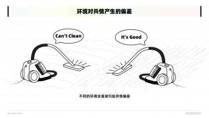 在體驗(yàn)設(shè)計(jì)的過(guò)程中,我們需要與目標(biāo)對(duì)象構(gòu)建共情時(shí),一定是有目的有意圖的。以使用性測(cè)試為例,往往我們都會(huì)設(shè)定一些產(chǎn)品測(cè)試任務(wù)和目標(biāo)給用戶,再進(jìn)行觀察和共情。這也將允許我們能夠在同一個(gè)或相似的場(chǎng)景事件中發(fā)生共情,這樣才能夠獲取到更真實(shí)有效的共情。以一個(gè)吸塵器產(chǎn)品為例,如果對(duì)方是在地毯上測(cè)試的,而你是在木質(zhì)地板的環(huán)境下去共情的,那么共情結(jié)果肯定是有所出入的。所以構(gòu)建一個(gè)共情目的甚至是環(huán)境是有效共情的一個(gè)重點(diǎn)之一。