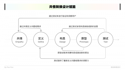 最后便是共情結(jié)果如何應(yīng)用到設(shè)計(jì)之中,將共情結(jié)果賦能到產(chǎn)品設(shè)計(jì)也是共情工作的價(jià)值所在。通常這套流程是共情->定義->構(gòu)思->原型->測(cè)試,在這個(gè)整個(gè)過(guò)程中隨時(shí)是可以返回到前面其他階段中反復(fù)打磨的,而共情作為一個(gè)起點(diǎn)也揭示了其重要性。我們一切的共情工作皆為了能夠優(yōu)化和解決產(chǎn)品的問(wèn)題,使得產(chǎn)品體驗(yàn)?zāi)軌蚋茫@是我們?cè)隗w驗(yàn)設(shè)計(jì)中不斷去共情的初衷。