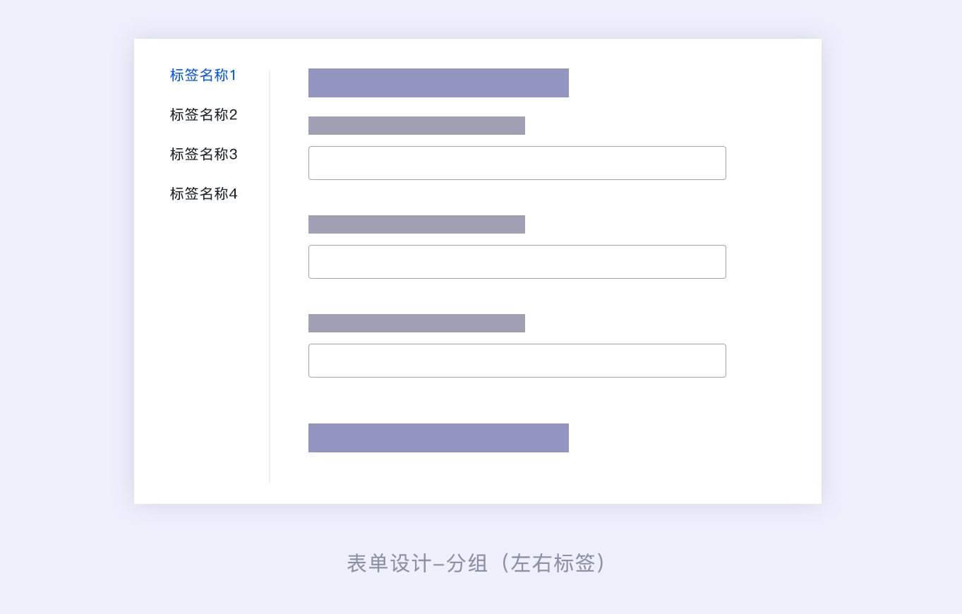 標(biāo)簽分組:指的是將表單信息分組標(biāo)簽化,形成獨(dú)立的小表單信息,分為上下結(jié)構(gòu)和左右結(jié)構(gòu)。