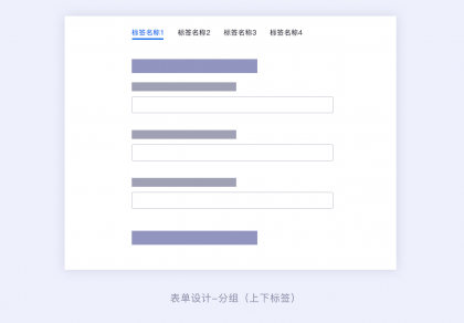 復(fù)雜的表單可以采用區(qū)域分組的形式,還可以采用標(biāo)簽分組的設(shè)計(jì)形式。標(biāo)簽分組可以一眼看全所有分組大類信息,對(duì)于一個(gè)表單涉及到多種信息字段的情況,并且每個(gè)組的字段信息都是獨(dú)立的,不是強(qiáng)相關(guān)的,那么我們就可以采用標(biāo)簽分組的形式。