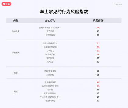 2、車上常見的行為風(fēng)險(xiǎn)指數(shù)
