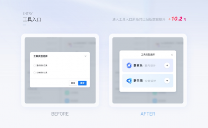 案例1:工具入口的圖形化表達用戶從工作臺進入到設計工具,純文本的表達用戶很容易產(chǎn)生疑惑,在不改變業(yè)務邏輯的情況下,進行圖形化表達。