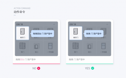 戶型繪制和調整是酷家樂工具的必經(jīng)之路,由于對象間用2D圖形圖例表達比較難辨識出來準確意思,因此設計做了圖形信息的優(yōu)化,讓命令更為直觀,更高效的拾取命令操作。