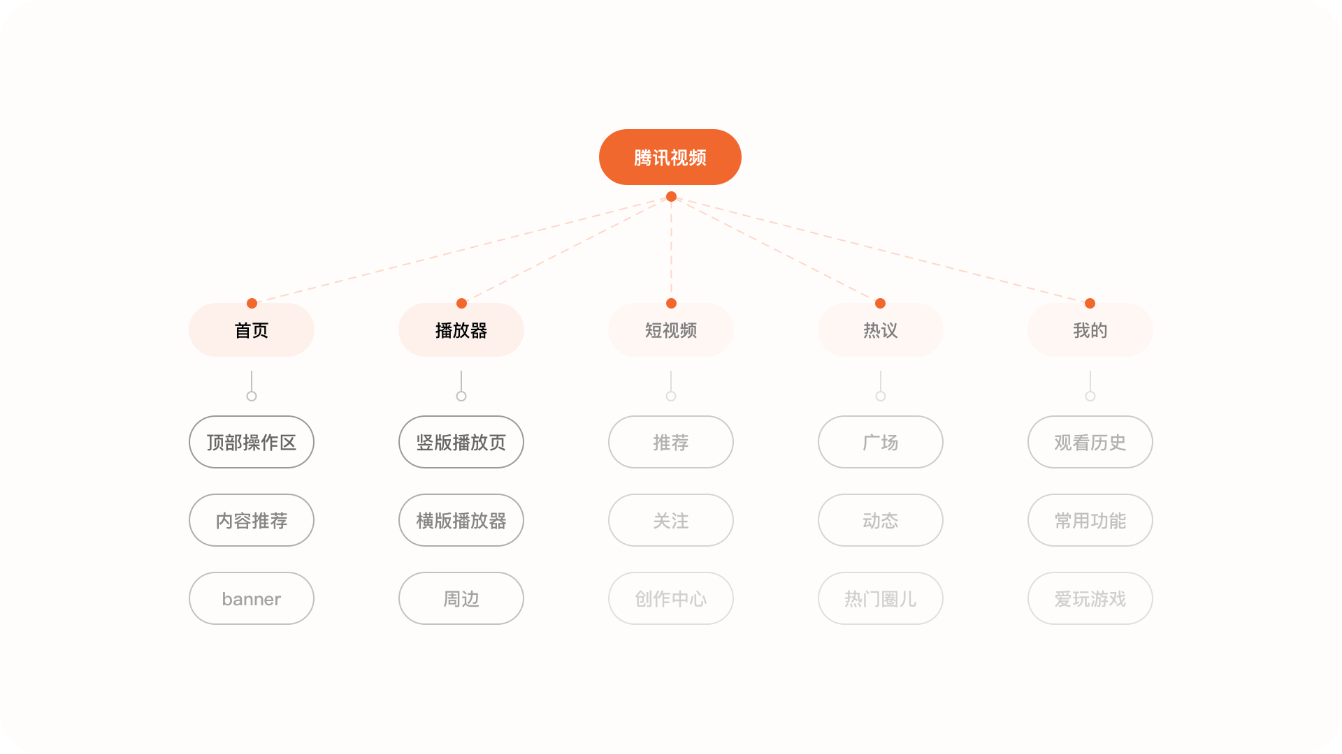 1.內(nèi)容結(jié)構(gòu)作為視頻內(nèi)容平臺,通過對騰訊視頻APP的結(jié)構(gòu)梳理,發(fā)現(xiàn)產(chǎn)品內(nèi)大部分的內(nèi)容都是圍繞視頻來進(jìn)行拓展,整體框架分為:首頁、短視頻、VIP會員、熱議、我的這幾個(gè)模塊。本次我們主要針對于首頁與播放器這兩個(gè)場景進(jìn)行重點(diǎn)分析