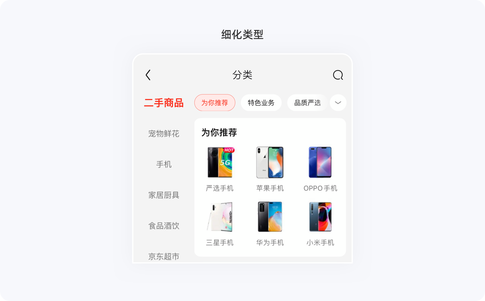 這里最為典型的例子就是電商平臺(tái)的分類,它通過一級(jí)、二級(jí)、甚至三級(jí)分類將商品所涉及到的類型合理的控制在有效范圍內(nèi),這些選項(xiàng)被分類/分組之后,關(guān)鍵信息得到強(qiáng)化,能輔助用戶快速作出決策。還有后面的二次篩選功能,幫助用戶進(jìn)一步縮小范圍,選擇效率明顯會(huì)更高。當(dāng)然,這不僅僅是依靠希克定律,還得結(jié)合運(yùn)營需求、用戶數(shù)據(jù)等因素進(jìn)行合理化分類。