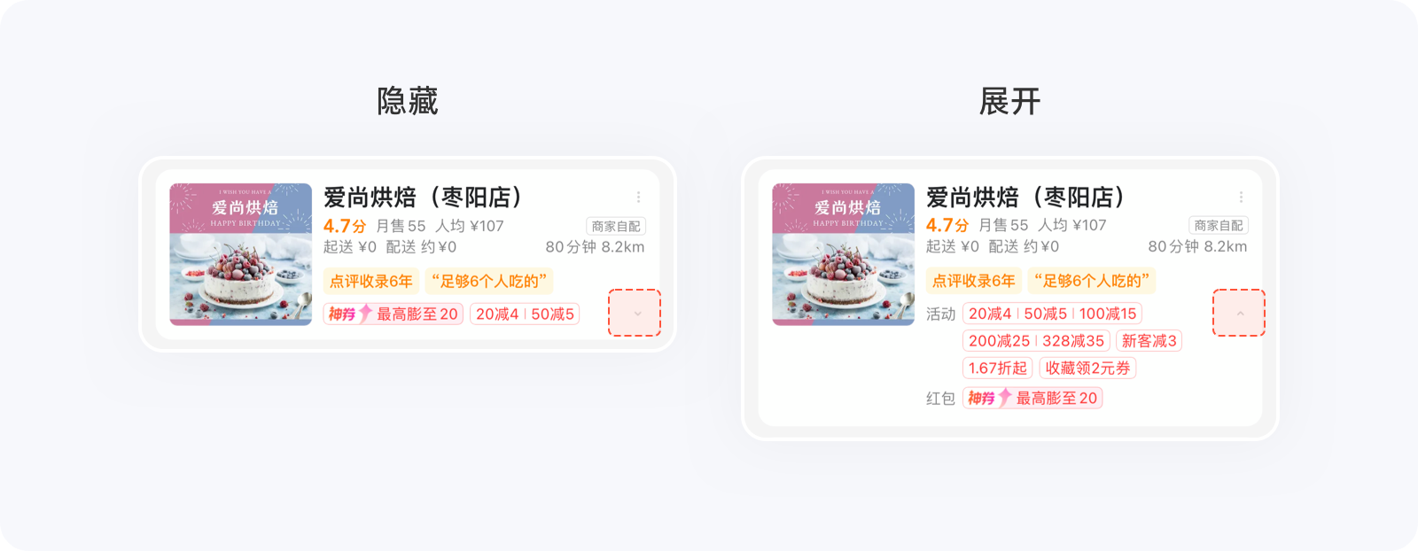 與刪除不同的是,隱藏并沒有刪減選項(xiàng)的數(shù)量,只展示部分常用、高頻的選項(xiàng),去除其他信息的干擾,方便用戶快速做出決策,而將其他不常用、低頻選項(xiàng)隱藏起來,在需要時(shí)系統(tǒng)自動(dòng)展示、或用戶手動(dòng)喚出。其實(shí),不管是交互四策略中的隱藏、還是希克定律中的隱藏,其作用都是通過暫時(shí)性地減少信息數(shù)量來提升用戶操作效率。