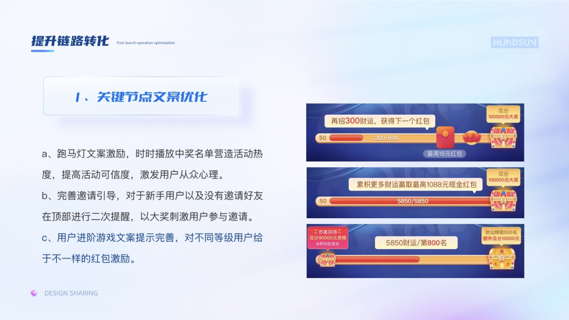 c、用戶進(jìn)階游戲文案提示完善,對不同等級用戶給于不一樣的紅包激勵。