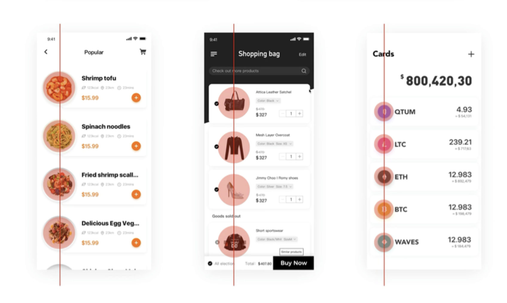 - 連續(xù)性:視覺偏向感知連續(xù)形式,元素共享明確界限區(qū)域則分一組,設(shè)計(jì)中常用卡片式組合相關(guān)元素。