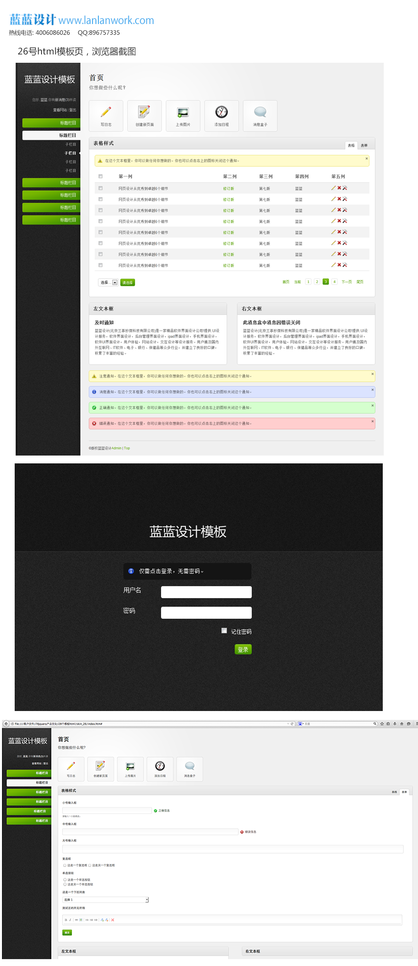 內(nèi)容包含登錄頁、列表頁、輸入頁、共3頁,html、images/css/div
