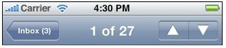 在iPhone 平臺(tái)上,如果應(yīng)用程序有信息層級(jí)關(guān)系(比如郵箱> 收件箱> 郵件),利用title 進(jìn)行導(dǎo)航, 導(dǎo)航欄左側(cè)始終是返回按鈕,右側(cè)如果有必要,可以放針對(duì)內(nèi)容的操作控件,中間有標(biāo)題。