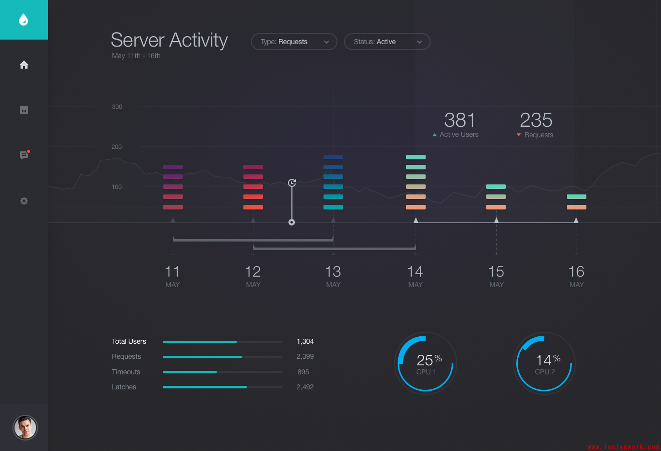 今天跟大家分享的是深色背景的網(wǎng)站界面,深色背景穩(wěn)重大氣,體現(xiàn)科技感。在界面布局方面簡(jiǎn)潔清晰,同時(shí)界面中的表格、按鈕、標(biāo)簽、圖表等控件精致美觀,不管是做web端網(wǎng)頁、大屏界面,還是手機(jī)app,都可以借鑒。