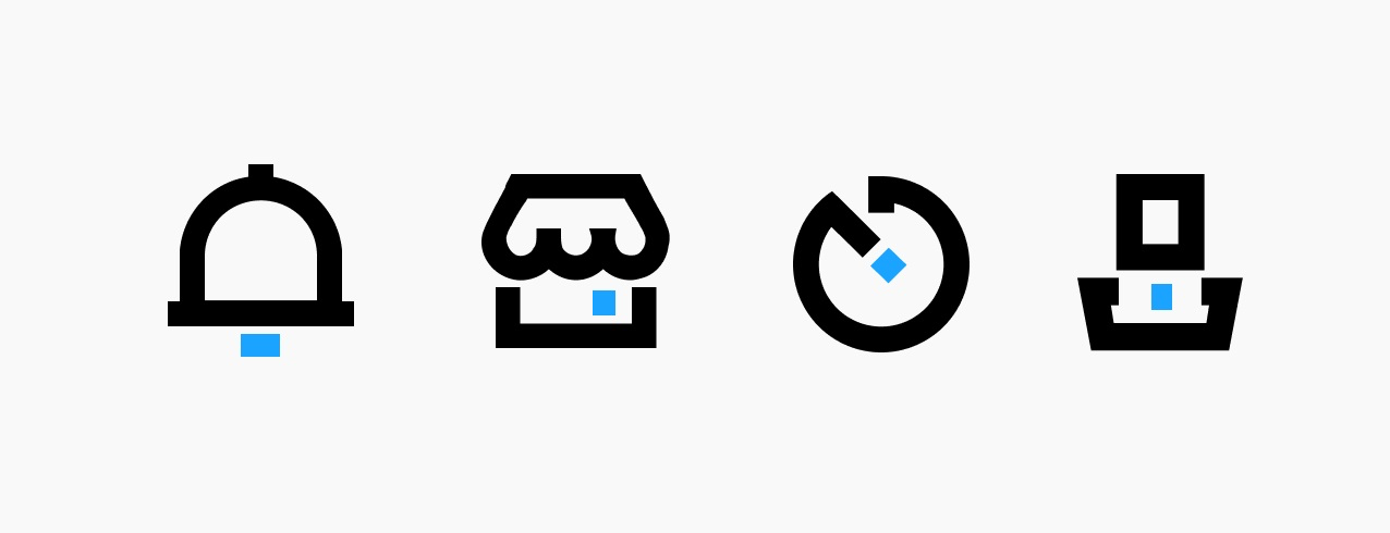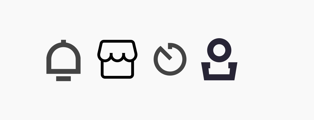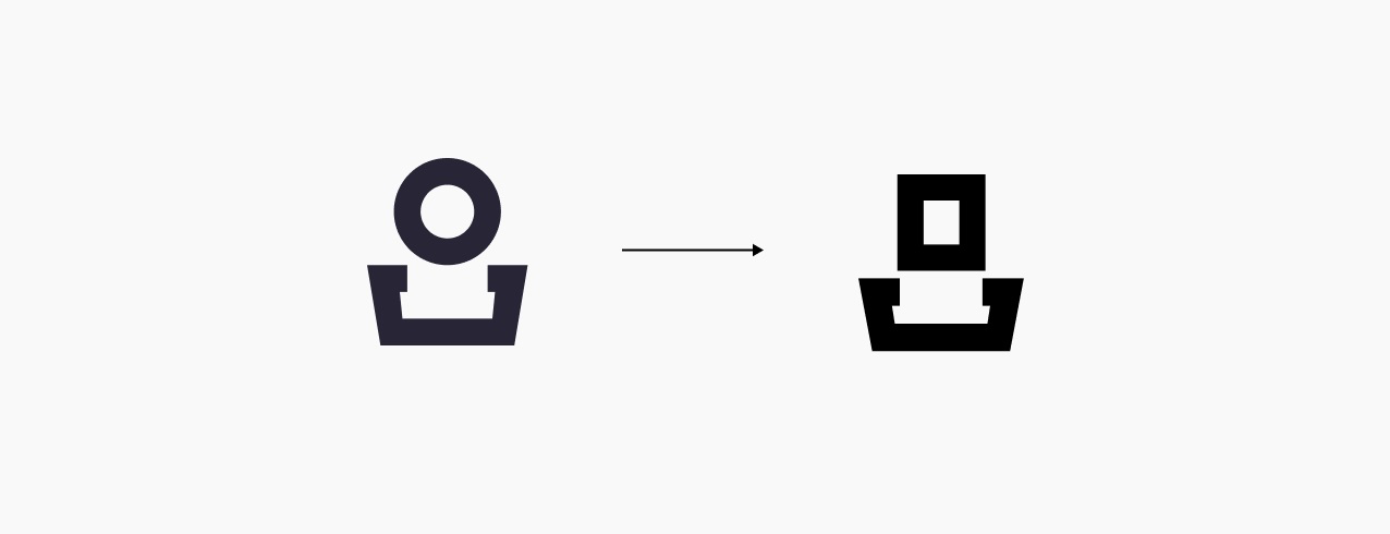 大家要明白,雖然我們可以直接下載圖標(biāo)素材,而且可以通過審美讓他們變得相對精致統(tǒng)一,但素材畢竟還是通用的,我們還是需要融入自己的想法和設(shè)計,不能完全依賴素材,舉一個最簡單的例子,“我的”這個圖標(biāo),他的腦袋是圓形的,那我們是不是可以把他改成矩形的?