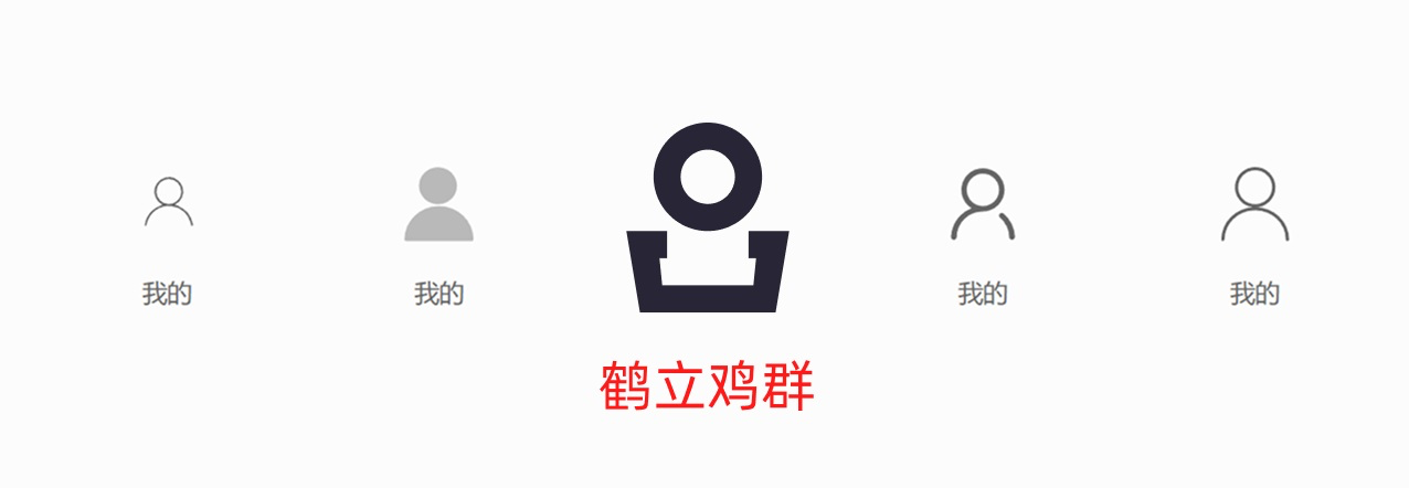 這里面我們需要注意,在找素材的時候,你至少需要找到一兩個不太一樣的圖標(biāo),否則整體就會比較普通,我們現(xiàn)在這樣看上去,第四個“我的”圖標(biāo),相對來說不一樣一點,至少沒那么常見: